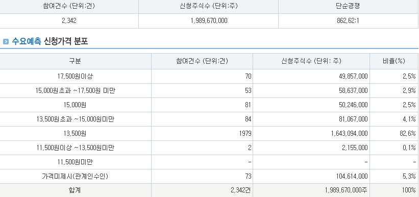 | 공모 희망가 | 11,500원 ~ 13,500원 |