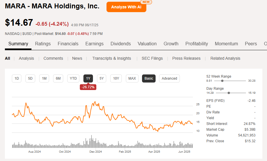 미국 스테이블코인 관련주 5 : 마라 디지털 홀딩스(MARA)