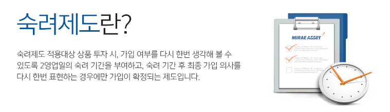 | 숙려제도의 정의 | 복잡한 금융상품 가입 시 숙고 기간을 부여해 신중한 투자 결정 유도 |