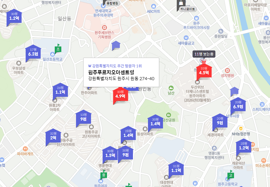 | 두진하트리움시티원주 | 115㎡ | 3억 6,900만원 (2024년 4월, 30층) |